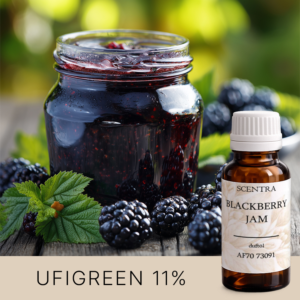 Ein süßer, saftiger Duft reifer Brombeeren in hausgemachter Konfitüre, verfeinert mit zarten Karamellnuancen. Perfekt geeignet für Soja- und Paraffinkerzen sowie Duftwachse – schafft eine gemütliche, dessertartige Atmosphäre im Wohnzimmer und in der Küche.
