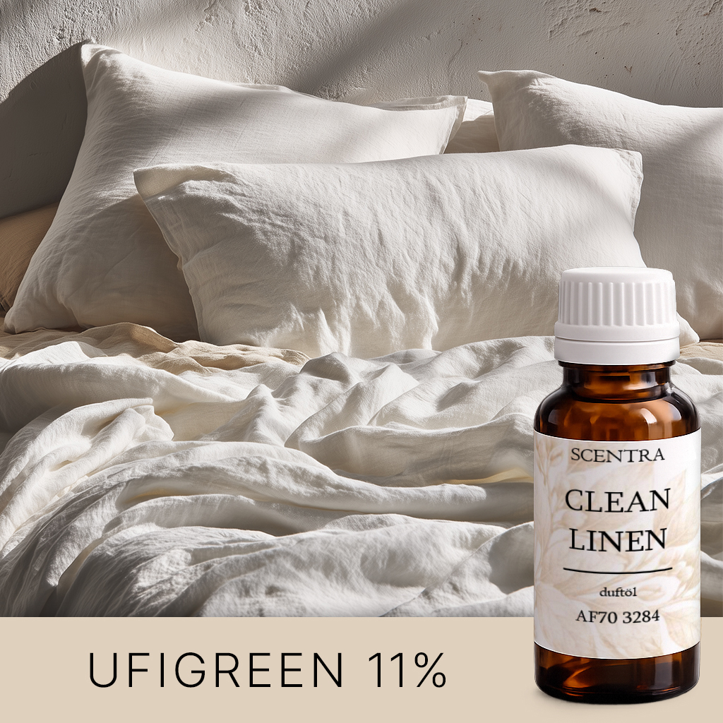 Frischer, leichter Duft nach sauberer Bettwäsche mit Baumwoll-, Ozon- und Citrusakzenten. Ideal für Duftkerzen, Wachsmelts und Home-Care-Produkte – schafft sofortige Frische und Reinheit in Bad, Schlafzimmer und Relax-Zonen. Entwickelt von Aspol für Soja-, Paraffin- und Palmwachs: saubere Kalt-/Heißduftentwicklung, stabile Performance, IFRA-konform.