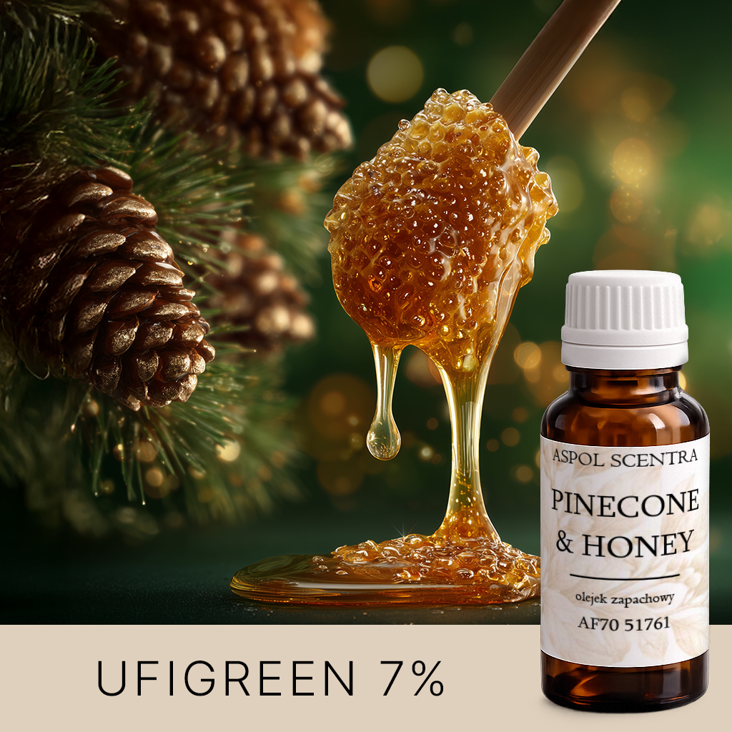 Eine warme, natürliche und harmonisch umhüllende Komposition, die das Aroma von Kiefernzapfen mit der zarten, goldenen Süße von Honig verbindet. Der Duft ist waldig, harzig und zugleich weich-süß — er schafft eine Atmosphäre von winterlicher Ruhe, Gemütlichkeit und natürlicher Tiefe. Ideal für Kerzen und Wachse in herbstlich-winterlichen, waldigen und entspannenden Kollektionen.